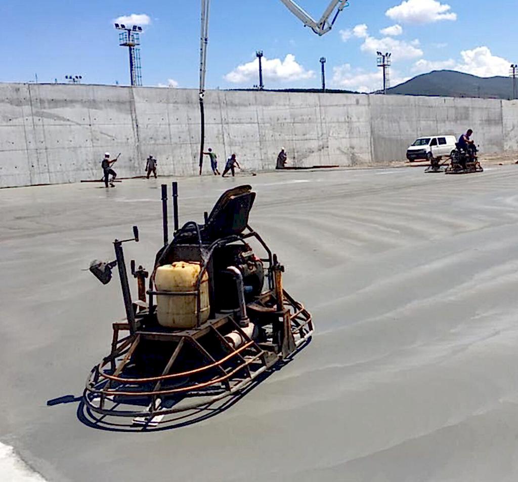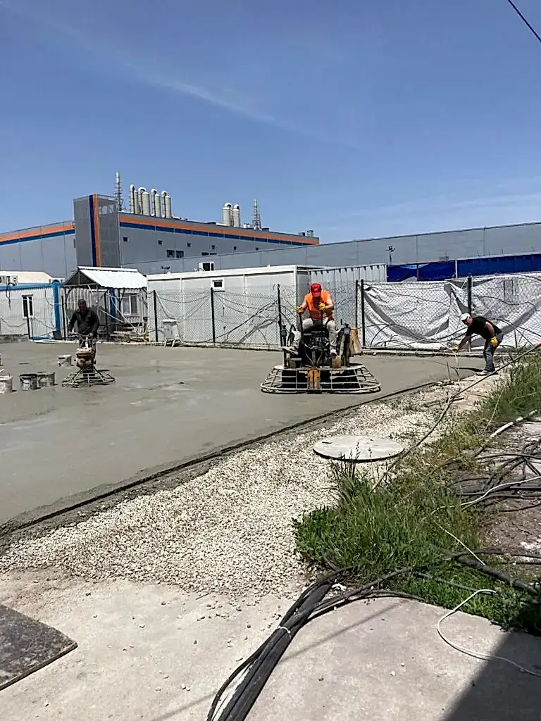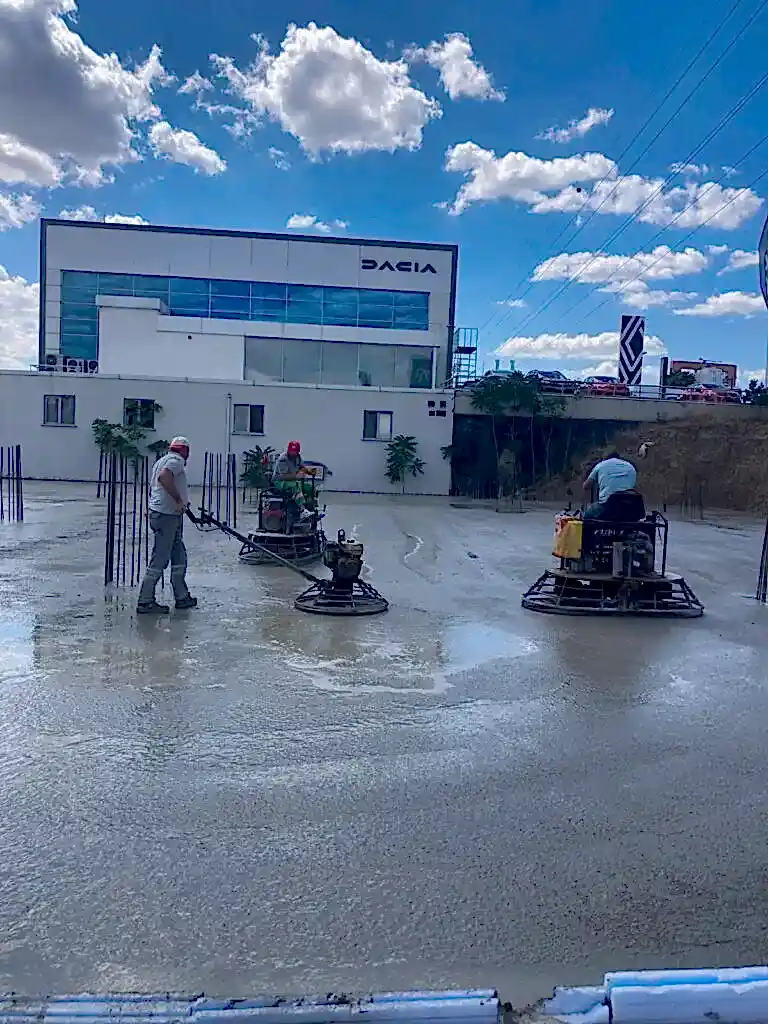 - Helikopterle Düzleştirme: Beton dökümü hemen ardından helikopterle beton yüzeyi düzeltilir ve sıkıştırılır.